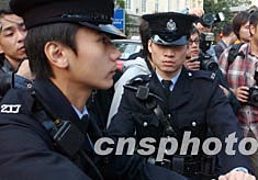 二零零三年香港特別行政區(qū)區(qū)議會選舉投票日十一月二十三日在香港十八個區(qū)同時展開,為保障選舉投票安全,警察在投票站加強(qiáng)治安管理。 中新社記者:錢興強(qiáng)