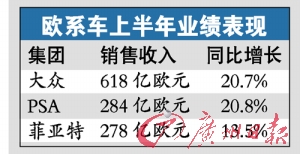 據(jù)統(tǒng)計(jì),大眾汽車集團(tuán)銷售收入升至618億歐元,同比增長20.7%。另一家歐洲汽車巨頭標(biāo)致雪鐵龍也發(fā)布了半年業(yè)績,集團(tuán)凈利潤為6.8億歐元,上半年?duì)I業(yè)額增長20.8%;日常營業(yè)利潤提高至11.37億歐元,而去年同期虧損 8.26億歐元。(劉俊)