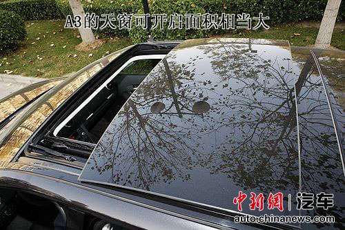 前后雙天窗是這輛車上最奢侈的舒適性裝備。不像A5只能微微向上開啟的全景天窗基本只是個擺設,A3的天窗可開啟面積相當大,而且前后都有遮陽簾。