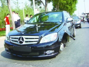 昨天下午2時(shí)30分許,來(lái)自內(nèi)蒙古赤峰市的李先生,在清河附近的博瑞祥馳汽車銷售服務(wù)中心新買了一輛奔馳轎車。沒(méi)想到新買的“大奔”剛上路不到1公里,左前輪就飛了出去,好在當(dāng)時(shí)的車速不快,李先生幸未受傷。