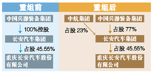 與此前“中航將汽車資產(chǎn)無償劃撥給長安汽車集團(tuán)”的報(bào)道不同, 根據(jù)重組方案,中航工業(yè)以其持有的昌河汽車、哈飛汽車、東安動力、昌河鈴木、東安三菱的股權(quán),劃撥給兵裝集團(tuán)旗下的中國長安汽車集團(tuán);兵裝集團(tuán)將旗下中國長安汽車集團(tuán)23%的股權(quán)劃撥給中航工業(yè)。兩集團(tuán)重組成立新的中國長安汽車集團(tuán)股份有限公司,兵裝集團(tuán)持股77%、中航工業(yè)持股23%。