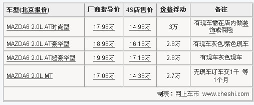 隨著新款馬自達6的即將上市銷售,目前銷售的老款車型也出現(xiàn)了較大幅度的松動。據(jù)網(wǎng)上車市價格監(jiān)測系統(tǒng)顯示:目前購買馬自達6的消費者最高可享受到最高3萬元的促銷優(yōu)惠,最低售價已經(jīng)跌破了15萬元關口,對于一款中級車而言,這樣的價格已經(jīng)貼近A級車的身價了。