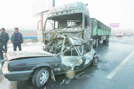 無(wú)獨(dú)有偶,2010年歲首,在京港澳高速公路轉(zhuǎn)連霍高速公路下道口處又發(fā)生一起追尾事故,所幸無(wú)人員傷亡。
