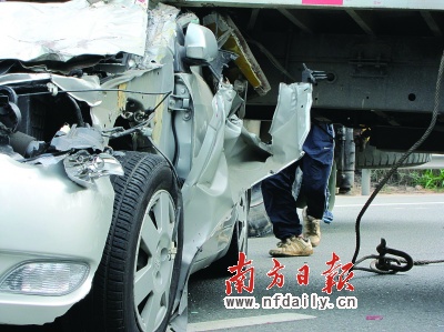 比亞迪轎車上的林先生告訴記者,他們是廣東湛江人,昨天他帶著女朋友和親戚乘坐侄子的小車回老家準(zhǔn)備結(jié)婚。沒想到侄子脾氣不太好,看到貨車司機在前邊的快車道上不急不慢地行駛,一時急于超車,結(jié)果不小心發(fā)生了撞車,侄子的眉骨被撞裂,傷勢稍微嚴(yán)重一些,其他人則是不同程度的輕傷。