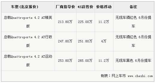 據(jù)北京地區(qū)瑪莎拉蒂展廳銷售人員介紹,全新Quattroporte總裁目前沒(méi)有現(xiàn)車銷售,但6月份會(huì)有一批現(xiàn)車抵達(dá)展廳,其中包括酒紅色的精英版,售價(jià)225萬(wàn)元;還有酒紅色的行政版,售價(jià)251.8萬(wàn)元;另外,全新Quattroporte總裁運(yùn)動(dòng)版將會(huì)有一臺(tái)黑色現(xiàn)車抵達(dá),售價(jià)265萬(wàn)元。該銷售人員表示,這批全新Quattroporte總裁將會(huì)在原有車型上增加更多配置,所以價(jià)格會(huì)有所提升。