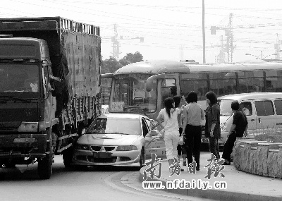 首先要說(shuō)的自然就是小車追尾大貨車的事故,這是最典型的中國(guó)特色高速公路事故,而小車車上人員的傷亡率在這樣的事故當(dāng)中高得驚人。路上跑著的大貨車,多半性能低下,典型的老牛拉破車,遇到點(diǎn)坡度,只能掛著一擋慢慢晃。加上大卡車的超載常態(tài)化,與性能日益進(jìn)步的私家車相比,卡車與小車的速度落差懸殊,對(duì)小車的安全造成了極大的威脅。另外大卡車司機(jī)中缺乏職業(yè)操守和道路安全常識(shí)的并不在少數(shù),隨意霸占小車道行駛或是?柯愤呅捃嚦蔀榧页1泔。車尾防護(hù)欄的缺失,大卡車成了大禍車,遠(yuǎn)高于小轎車車頭高度的卡車車尾,就如同一個(gè)個(gè)血盆大口,我們?cè)撊绾味惚芩鼈兊耐{?