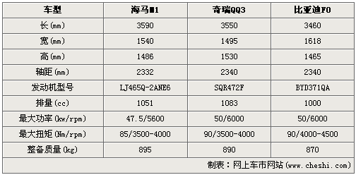 從上面的參數(shù)對比不難看出,海馬M1車身長度比QQ3、F0略大一點(diǎn),車寬在兩款車之間,而軸距要比QQ3、F0小了一點(diǎn)點(diǎn)。在動力上,海馬M1搭載柳汽的LJ465Q系列1.0L發(fā)動機(jī),最大功率47.5kw,最大扭矩85牛米,與QQ3的1.1L、F0的1.0L發(fā)動機(jī)相比,至少在數(shù)據(jù)上要遜色一點(diǎn)。