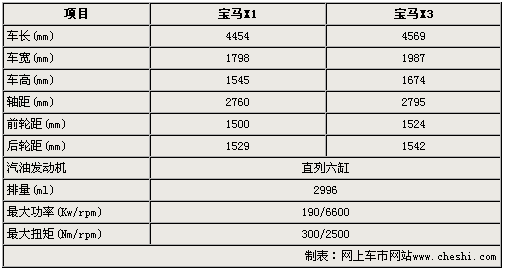 寶馬X1的長寬高分別為4454mm、1798mm、1545mm,軸距達(dá)到2760mm,與寶馬X3的4569mm、1853mm、1674mm、2795mm基本處于同一檔次。由于同樣搭載3.0升直列六缸發(fā)動(dòng)機(jī),所以在動(dòng)力性能方面寶馬X1甚至優(yōu)于寶馬X3。
