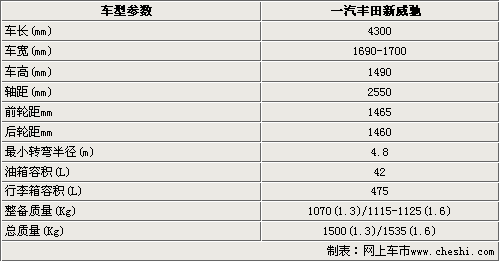 一汽豐田的A0級小車威馳,被豐田汽車公司稱為是“專門為中國設(shè)計的全新車型”。豐田新威馳于08年正式推出,主要目標(biāo)消費群體為80后的年輕人,其“生而簡酷”的特性已在年輕人群中引起極大反響。近日我們從豐田內(nèi)部人士處獲悉到,豐田威馳即將小改款,同時我們在第一時間得到改款后新威馳的圖片和車型參數(shù)。新款威馳在外形設(shè)計上將更加硬朗,與家族老大哥凱美瑞有幾分相似,在舒適配置上也會更加豐富,在車身尺寸和動力系統(tǒng)方面與目前銷售車型相同。