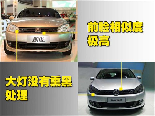 朗字系列作為眾泰車系的高端車系,是眾泰首度切入家轎市場的產(chǎn)品!袄省毕盗腥吭醋杂诜苼喬,其中有兩款曾經(jīng)在南京菲亞特國產(chǎn),“朗俊”的三廂車,源自菲亞特的西耶那,“朗杰”兩廂車,原型系菲亞特派力奧。從上圖的對比不難看出,朗俊前臉造型與大眾高爾夫6相比除了大燈沒有做熏黑處理之外,其他方面差別非常小。