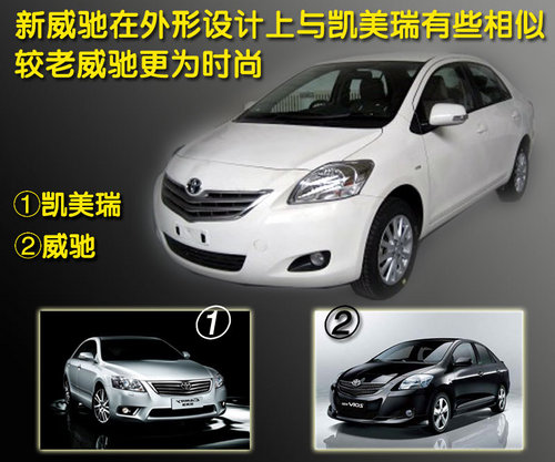 豐田新威馳于08年推出,主要定位目標為80后消費者,其時尚的外形設(shè)計被不少年輕人所認可。近日我們得到了改款新威馳的圖片及參數(shù),從圖片中來看,新威馳在造型方面與凱美瑞相似,我們推斷是新家族前臉的延伸。在車型參數(shù)方面,改款新威馳將推出2款1.3排量和4款1.6排量,共計6款車型。與之搭配的是4速自動變速箱和5速手動變速箱。而在尺寸與動力方面與現(xiàn)款車型保持一致。