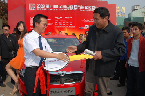 中新網(wǎng)4月19日電 4月12日下午3時(shí)許,中華駿捷FRV新車(chē)交接儀式在辛集站巡展現(xiàn)場(chǎng)舉辦。一位辛集的中華駿捷FRV新車(chē)主接過(guò)閃閃發(fā)亮的鑰匙模型,激動(dòng)地說(shuō)道,謝謝華晨汽車(chē)、謝謝百?gòu)?qiáng)巡展。