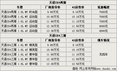 據(jù)長安鈴木4S店銷售人員介紹,全新天語SX4系列只有兩廂車型有現(xiàn)車銷售,三廂天語SX4則沒有現(xiàn)車。而兩廂天語SX4 1.6L車型目前最高可以優(yōu)惠7000元,1.8L車型最高可以優(yōu)惠8000元。另外,購買天語SX4 1.8L車型,還可以獲贈(zèng)廠家所提供的半價(jià)購置稅優(yōu)惠。天語SX4三廂與兩廂車型的優(yōu)惠幅度一樣,但沒有現(xiàn)車銷售,只接受消費(fèi)者預(yù)訂。