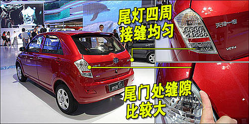 天津一汽威姿V1車尾部分設(shè)計(jì)與老款區(qū)別差別很大,與車頭相同的是,威姿V1的尾燈及后行李箱的接縫同樣十分均勻,整體做工做到了前后一致,但尾門處縫隙較大。