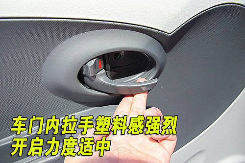 天津一汽威姿V1車門內(nèi)側(cè)拉手材料為塑料材質(zhì),但整體做工還是不錯的,拉手周圍的做工都很精細(xì)。