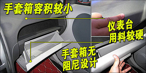 天津一汽威姿V1的手套箱沒有阻尼設計,在打開手套箱后依靠重力自由下落,手套箱看起來比較小,所以只能存放一些小件的東西。