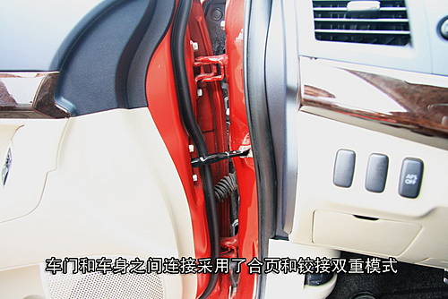 車門比同級(jí)別的日系車要沉些,感覺(jué)內(nèi)在設(shè)計(jì)和扎實(shí)。此外,車門和車身之間連接采用了合頁(yè)和鉸接雙重模式。