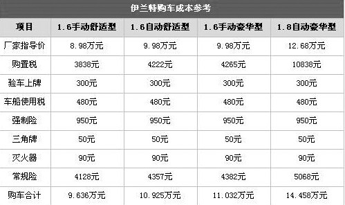 一、購車成本,伊蘭特1.6的排量性價比較好,1.8排量車型不僅購置稅沒有優(yōu)惠,而且裸車的費用高出1.6很多。其中1.6手動舒適型和1.6手動豪華型更適合家庭用戶選購。