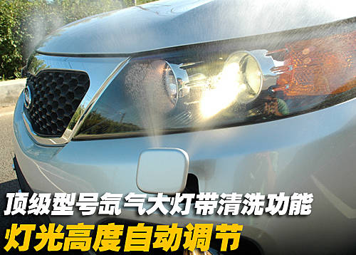 HID氙氣前大燈與極具起亞家族特色的“老虎嘴”狀散熱格柵直接相連,燈內(nèi)采用黑底設(shè)計加上雙圓燈組的布局,讓全新索蘭托在SUV的剛毅粗獷中又添加了幾分銳利的鋒芒。同時帶有大燈清洗和自動調(diào)節(jié)功能。