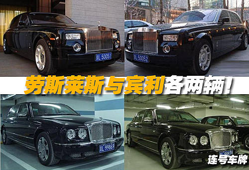 除此之外,黃光裕還擁有兩輛黑色的勞斯萊斯-幻影Phantom,兩輛黑色的賓利-雅致Arnage并且車牌的尾數(shù)都是連著的。除去其它車型不說,就這四輛車的價(jià)值就已經(jīng)超過了2000萬元人民幣了。