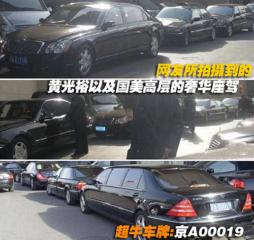 有網(wǎng)友爆料,在昆侖飯店拍到黃光裕等國美高層的“奢侈級”加長豪華轎車,包括黃光裕的邁巴赫62(據(jù)傳擁有兩輛),梅賽德斯-奔馳S600普爾曼等平時(shí)很難得一見的車型。可見有多么的“拉風(fēng)”!