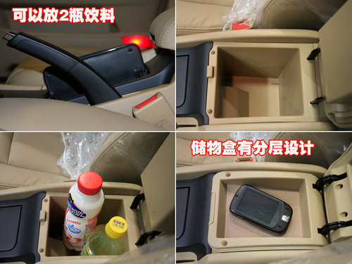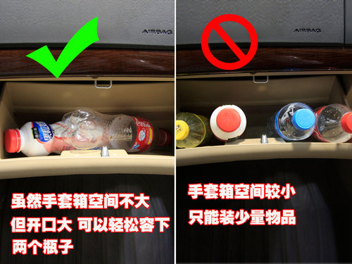 手套箱空間的確較小,雖然開口角度大,但空間不能令人滿意。只能放下2個(gè)600mm的飲料瓶,這一點(diǎn)新景程有些令人失望。