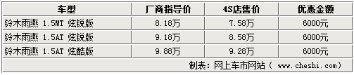 長(zhǎng)安鈴木雨燕---現(xiàn)金優(yōu)惠6000元