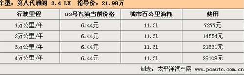 保險方面,指導(dǎo)價為21.98萬的第八代雅閣 2.4 LX購買了第三者50萬元責(zé)任險,每年的保險費用為8350元。