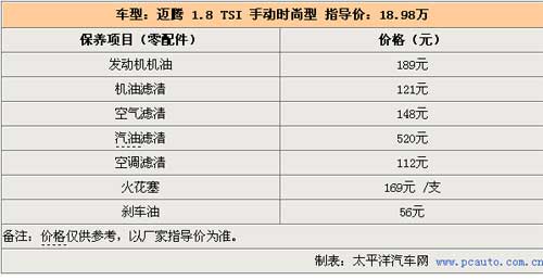 一汽大眾邁騰的機(jī)油三濾及其他配件的價(jià)格還是比較高的。邁騰的保養(yǎng)價(jià)格貴很大一定程度上是因?yàn)槠渑浼M(fèi)用較高,因?yàn)槠渑浼芏喽际遣捎玫倪M(jìn)口配件,而且邁騰的很多配件的更換難度都要大于其他品牌的車。不過(guò)隨著邁騰保有量的增加,保養(yǎng)費(fèi)用應(yīng)該也會(huì)隨之減低。邁騰一次小保養(yǎng)需要612元,而在3萬(wàn)公里進(jìn)行的大保養(yǎng)就需要2100元。