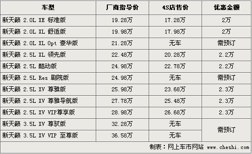 筆者從東風(fēng)日產(chǎn)經(jīng)銷商處了解,目前新天籟有2.5領(lǐng)先版,公爵版現(xiàn)車供應(yīng),主要顏色為紫色和黑色。2.0排量車型可優(yōu)惠現(xiàn)金2萬元,2.5L可優(yōu)惠現(xiàn)金2.2萬元,尊雅版車型可優(yōu)惠到2.3萬元。消費者如果訂購3.5L的話仍需要預(yù)訂,訂金為2000元。