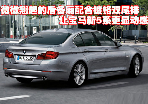 寶馬新5系尾燈雖然傳承經(jīng)典的“L”造型設(shè)計(jì),但轉(zhuǎn)向燈卻同樣采用了LED元素,彰顯大氣的同時(shí)又不失前衛(wèi)與時(shí)尚。此外,微微翹起的后備廂配合鍍鉻雙尾排設(shè)計(jì),讓寶馬新5系更顯動感。