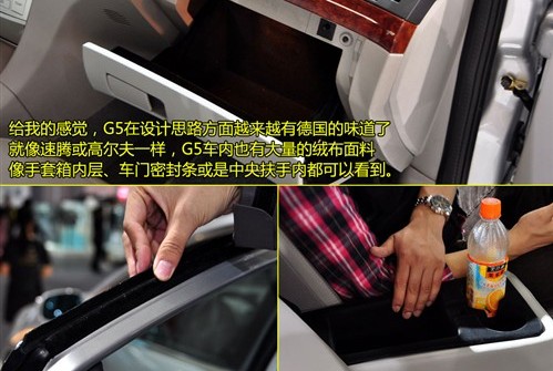 雖然總體感覺還不錯,但真正讓我們徹底認(rèn)可瑞麒G5做工的還是一些細節(jié)方面的表現(xiàn)。首次前車門門板下端的絨面裝飾比較細膩,雖然它并沒有太多實際作用,但其意義所在就是用來提升車型的檔次感。同樣我們發(fā)現(xiàn)瑞麒G5在手套箱、中央扶手箱內(nèi)部都鋪墊了絨面內(nèi)襯,手感很有親和力。此外車門上的雙層密封絨布條也讓我們感到有些意外,這讓我們想到以做工精致著稱的大眾速騰。