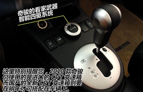相比逍客,2010款奇駿的變化更實(shí)用一些,特別是增加了一款配置最高的2.5L四驅(qū)至尊版車型,廠家指導(dǎo)價(jià)為26.98萬(wàn)元,外觀上和其他車型的區(qū)別就是增加前后的越野包圍,而在配置上則有DVD導(dǎo)航、側(cè)面攝像頭等。