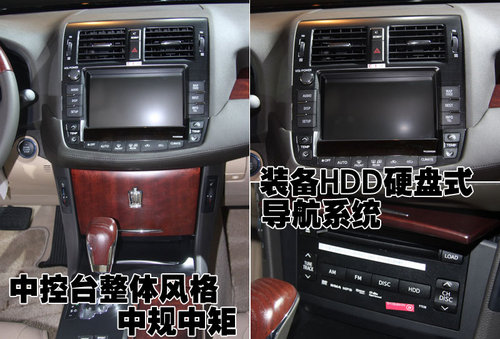 新皇冠的中控臺按鈕的設(shè)計均勻的布局在顯示屏四周,下方為隱藏式CD設(shè)計。整體的風(fēng)格上顯得過于沉穩(wěn)而顯得活力不足。同時裝配的HDD硬盤式導(dǎo)航系統(tǒng)等多項高端配置為消費者提供了更多的尊貴享受。