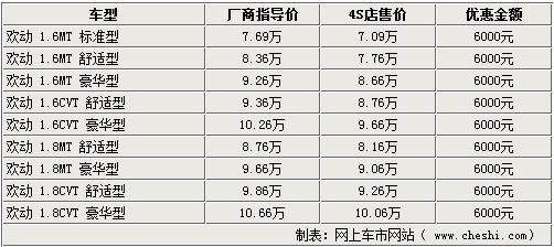 銷售人員表示,現(xiàn)在店內的歡動車型較齊全,全系車型均可享受6000元的現(xiàn)金優(yōu)惠,同時還有1000元至2000元的大禮包贈送,同樣超值,但不可折換現(xiàn)金。