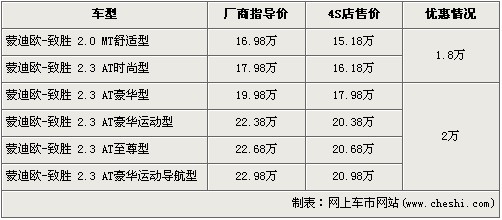 據(jù)4S店銷售人員介紹:在售的蒙迪歐-致勝共有6款車型,近期購買的消費者最高可以得到2萬元的優(yōu)惠。入門級的2.0L手動舒適版以及2.3L自動時尚版經1.8萬元的優(yōu)惠后,售價分別降為了15.18萬元和16.18萬元。2.3L豪華運動版、至尊版以及豪華運動導航版經全系最高的2萬元優(yōu)惠后,售價分別降為了20.38萬、20.68萬以及20.98萬元。