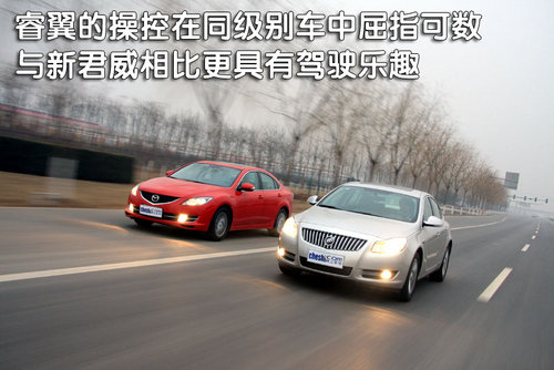 睿翼如同上代馬自達6一樣,具有同級車中較好的操控性,經(jīng)過了幾天兩輛車的試駕,感覺睿翼在操控樂趣上更勝一籌,但對于工作商務新君威的舒適性以及米色內(nèi)飾更為適用。從初步駕駛感覺來說,兩款車都可以較快的上手,操作上很簡單。