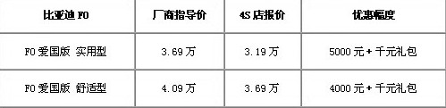 比亞迪F0優(yōu)惠5000元 搭上購置稅末班車