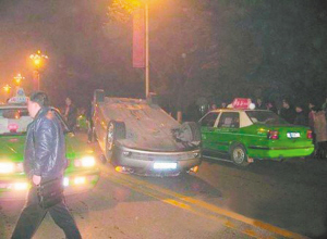 車水馬龍的主干道上,一輛嶄新的寶馬5系轎車四輪朝天,道路兩旁停滿了出租車……3日凌晨零時(shí)許,這一幕出現(xiàn)在樂山市區(qū)牛咡橋附近的嘉定路路段。目擊者說,事情緣于一輛出租車和寶馬車的紛爭(zhēng),出租車“受氣”后引來了更多的出租車,眾的哥和現(xiàn)場(chǎng)圍觀者一齊將寶馬車翻了個(gè)底朝天。