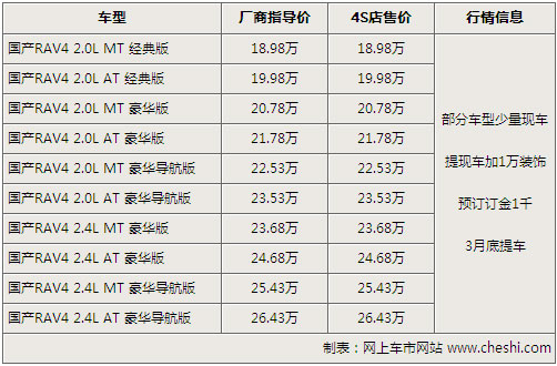 筆者從北京地區(qū)經(jīng)銷商處了解,目前豐田RAV4現(xiàn)車供應(yīng)仍然比較緊張,僅有2.0AT豪華版和2.4AT豪華版有黑色,銀灰色現(xiàn)車供應(yīng)。其他款均需要預(yù)訂,現(xiàn)在訂車的話至少節(jié)后才能提車。同時(shí),消費(fèi)者提現(xiàn)車的話需要加1萬元裝飾或者現(xiàn)金,裝飾可由消費(fèi)者自主選擇。個(gè)別店甚至加1.5萬元左右。