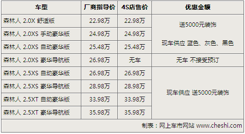 相比11月初的加價銷售,目前購買斯巴魯森林人店內(nèi)可贈送價值5000元的裝飾,其中包括了倒車?yán)走_(dá),尾喉,腳墊,2年道路救援卡等等,而在價格方面沒有優(yōu)惠幅度。現(xiàn)車方面,2.0豪華版,2.5豪華版有藍(lán)色、灰色、黑色、銀色等現(xiàn)車供應(yīng),可供挑選的空間還是很大的。