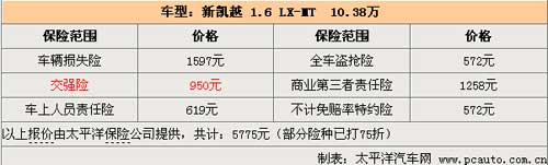 保險費用在車主的用車成本中是除油耗以外的第二大頭。本次對比的幾臺車都是在10萬價位,而保險費用與車輛的價格是相匹配的,所以在保險費用上面的價格差異不大。指導價為10.38萬的新凱越 1.6 LX-MT在購買了50萬第三者責任險,車上人員責任險購買5萬元的保額以后,一年下來的保險費用在打8折以后需要5775元。