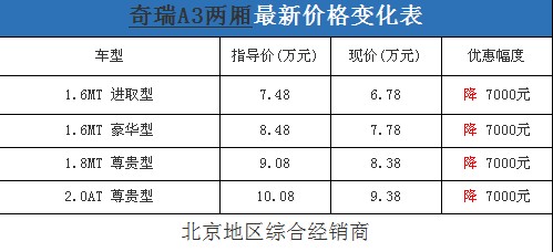 奇瑞A3:價(jià)格穩(wěn)定,最低售6.78萬