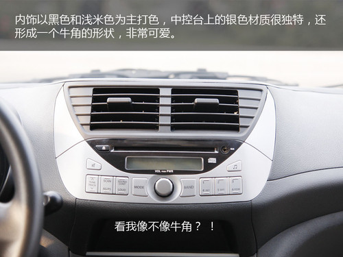 新奧拓的內飾部分由淺米色和灰色兩種顏色拼接而成,雙色座椅、黑色真皮方向盤都能體現(xiàn)出一股時尚運動感;座椅由淺米色真皮和灰色針織面料組成,運動風格的灰色里散發(fā)著一股和諧的氣氛,座椅的包裹性尚可,而且在座椅上還可以發(fā)現(xiàn)奧拓的LOGO,但是真皮坐椅設計只出現(xiàn)在新奧拓豪華型上。