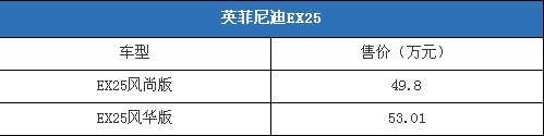 售49.8-53.01萬(wàn) 英菲尼迪EX25中國(guó)上市
