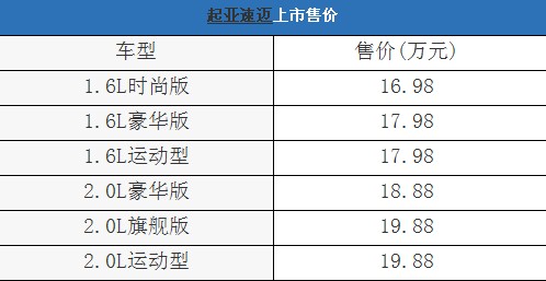 售16.98-19.88萬(wàn) 起亞速邁中國(guó)上市