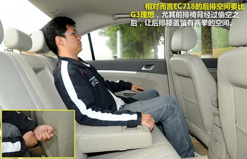 EC718的儲(chǔ)物空間跟G3不相伯仲,但EC718卻贏在細(xì)節(jié)處理上面。例如他的遮陽板是帶有夾子的、扶手箱是分兩層的、門板是可以放飲料的、手剎旁的兩個(gè)杯架底部是高低不同的(避免飲料干擾檔桿)、后排是設(shè)有煙灰缸的等等。