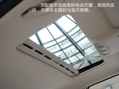 頂配車型還裝有電動天窗,只要您愿意,隨時可以打開天窗享受頭頂?shù)哪瞧{(lán)天。