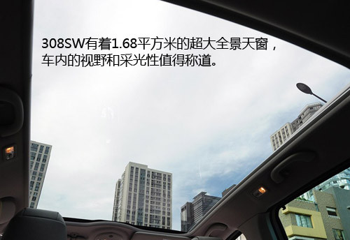 標(biāo)致308SW作為一款進(jìn)口小眾車型,可能并沒有太多人熟悉。作為一款休旅款車型,308SW有著1.68平方米的超大全景天窗。說(shuō)是天窗或許不夠形象,說(shuō)它是玻璃車頂則很貼切。這個(gè)覆蓋了幾乎三分之二車頂?shù)奶齑半m不能開啟,但加上前風(fēng)擋玻璃和寬大的側(cè)窗及尾窗,占到了車身總面積的1/3,車內(nèi)的視野和采光性值得稱道。
