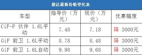 近日,編輯從北京地區(qū)一汽-大眾4S經(jīng)銷商處了解到,捷達(dá)全系有少量現(xiàn)車在售,目前店內(nèi)購(gòu)車可以優(yōu)惠3000元,并且贈(zèng)送價(jià)值1400元的裝潢禮包(地膠、腳墊和車撣等)。以下是捷達(dá)最新價(jià)格變化表: